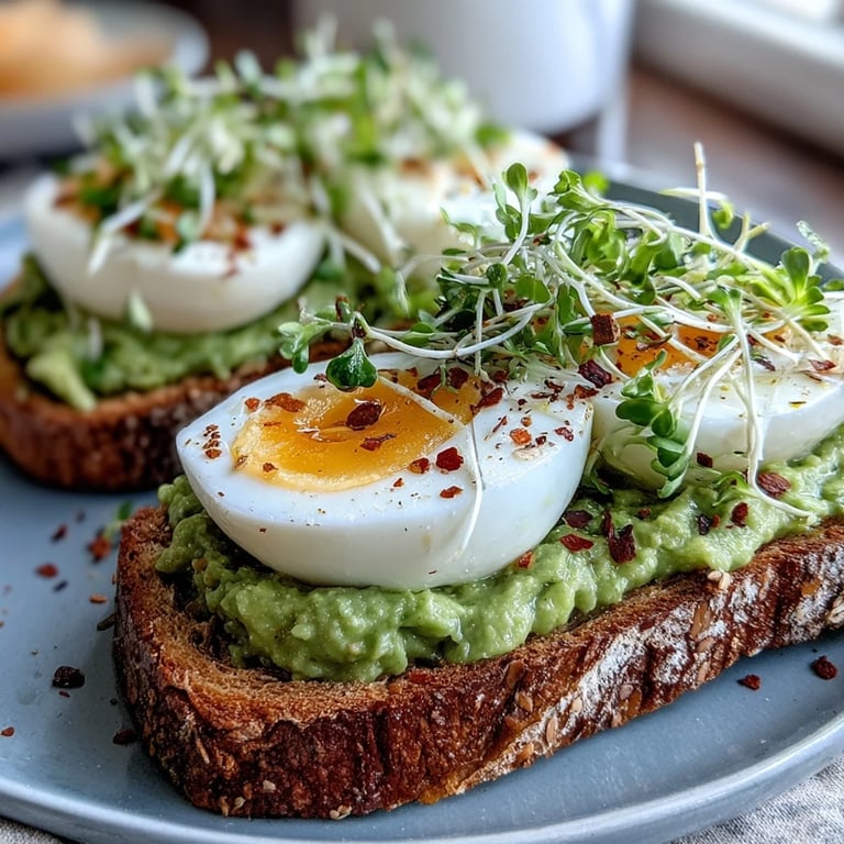 Save to Pinterest Experience a vibrant, nourishing breakfast with this Clean Eating Avocado Toast with Soft-Boiled Egg and Microgreens. This Modern American dish combines the creamy texture of a ripe avocado with perfectly soft-boiled eggs and the refreshing crunch of fresh microgreens, all served on crisp whole grain toast for a balanced, vegetarian start to your day.