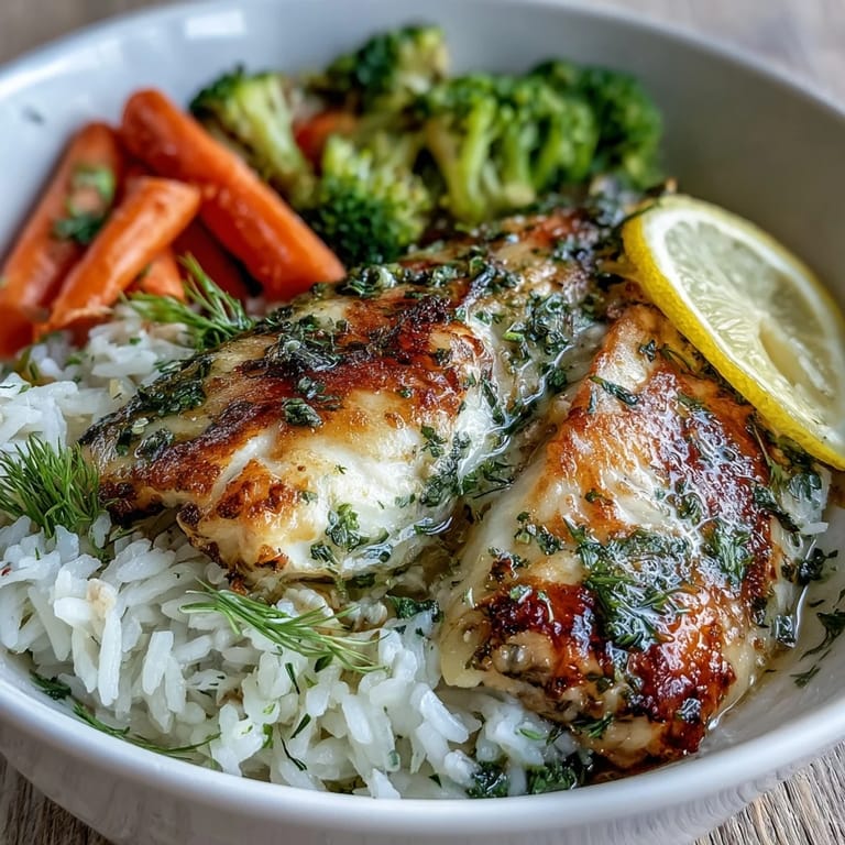Save to Pinterest Tender herb-baked tilapia fillets served over fluffy rice, accompanied by steamed broccoli and carrots for a wholesome, flavorful meal. This American-style main dish is easy to prepare, making it an ideal choice for a balanced weeknight dinner.