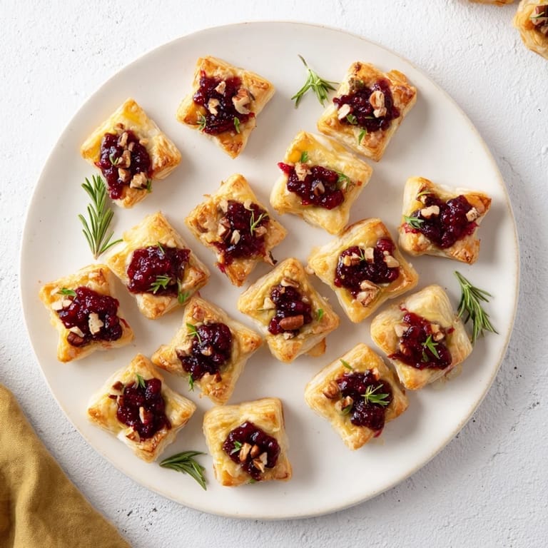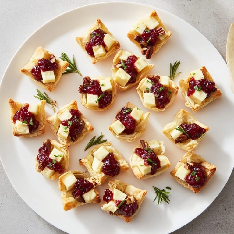 Save to Pinterest Flaky, golden puff pastry cups filled with creamy Brie and tangy cranberry sauce these elegant bites are the ultimate easy appetizer for any gathering.