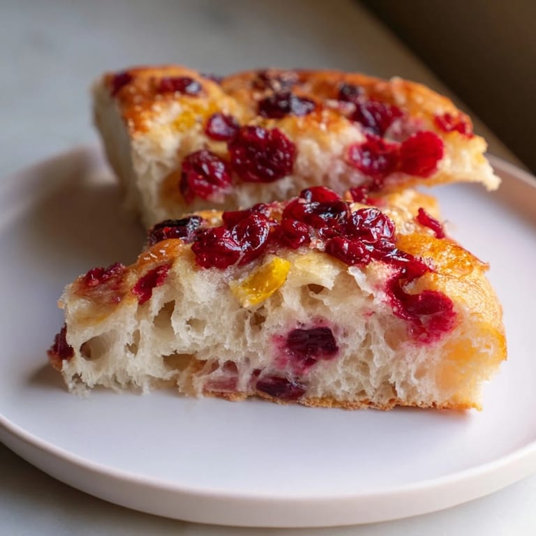 I first made this focaccia for a weekend brunch and loved how bright and festive it looked on the table. The cranberry-orange flavors make it a crowd-pleaser for holidays and everyday breakfasts alike.