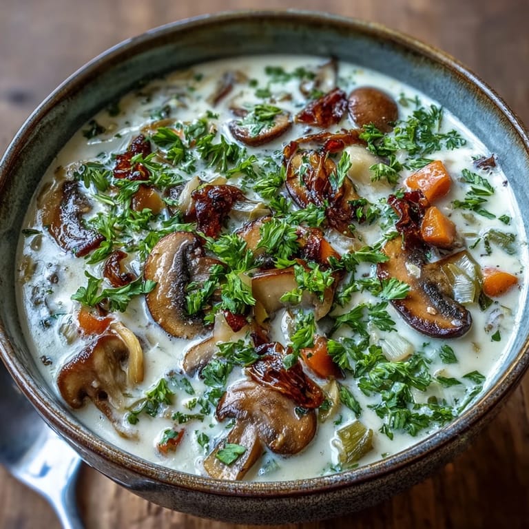 Save to Pinterest Last winter, I was standing in my kitchen on a gray afternoon when my roommate mentioned missing stroganoff from her childhood, but couldn't eat meat anymore. That simple comment sparked something—what if I could capture that same creamy, savory comfort in a soup? I started playing with mushrooms, miso, and sour cream, and by the time she tasted it, we both knew something special had happened. This soup became our go-to on nights when the weather turns cold and conversation turns deep.