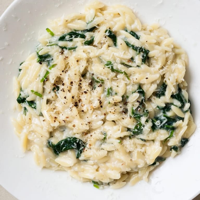 Save to Pinterest There's something magical about the moment when butter hits a hot pan and you catch that nutty aroma—that's when I knew I was about to make something that would disappear from the plate too quickly. One weeknight, I wanted comfort without the fuss, and orzo became my unexpected hero. It's smaller than regular pasta, almost like risotto, but it cooks faster and drinks up every drop of cream and broth you give it. Toss in spinach at the last second, let it wilt right there in the pan, and suddenly you have a dish that tastes like you spent hours in the kitchen when really, you didn't.