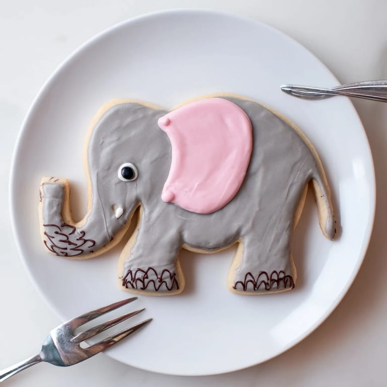 Save to Pinterest Fun, jumbo-sized elephant-shaped sugar cookies, perfect for sharing at parties or as a delightful treat for kids.