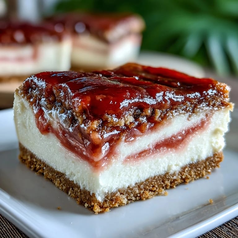 Save to Pinterest My aunt brought a slice of guava cheesecake to a family dinner years ago, and I watched my grandmother take one bite, then another, her eyes closing like she'd traveled somewhere warm and distant. The tropical sweetness hitting against that creamy, tangy base felt like a conversation between two worlds I didn't know could speak to each other. When she asked for the recipe, I knew I had to learn it myself—not just to replicate that moment, but to understand why something so simple could feel so complete.