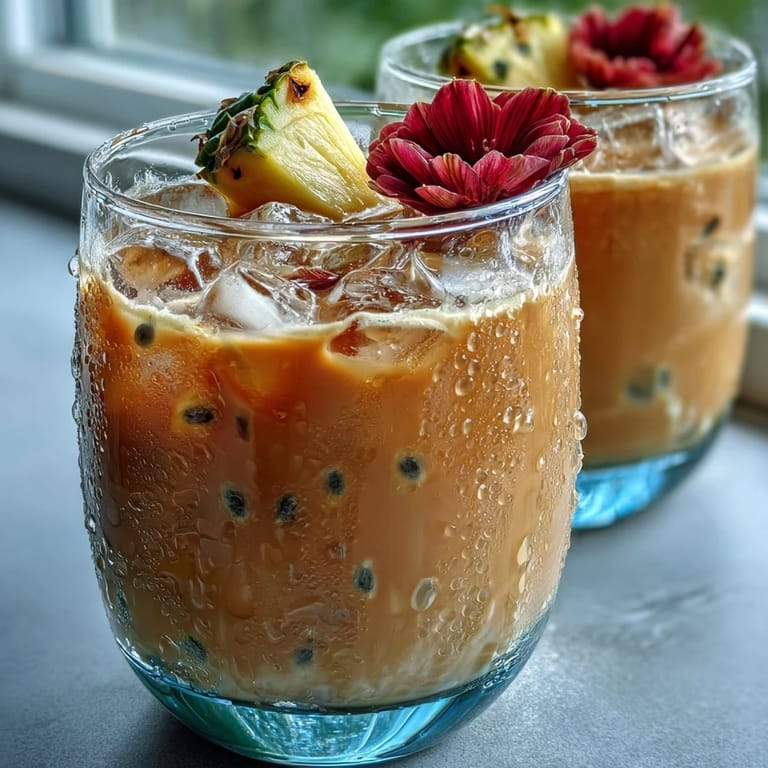 Save to Pinterest There's something about the first sip of a really good tropical drink that makes you forget you're standing in your own kitchen instead of on a beach somewhere. I discovered this combination quite by accident when I was experimenting with homemade syrups one sticky summer afternoon, trying to recreate that specific peachy-pink drink from a coffee shop I'd been thinking about all week. The guava and passionfruit kept calling to each other in my head, and when I added the ginger-forward syrup, something just clicked. Now it's become my go-to when friends drop by unannounced, because it tastes fancy but requires nothing more than a shaker and good timing.