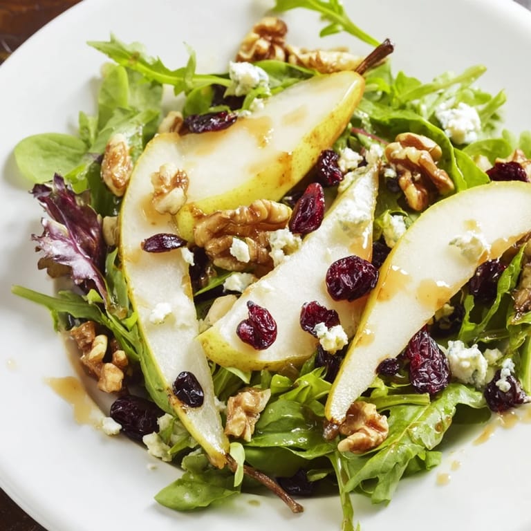 Save to Pinterest My neighbor brought over a basket of pears from her tree last autumn, just as they were reaching that perfect point between crisp and yielding. I stood in my kitchen staring at them, knowing I wanted something that would honor their sweetness without drowning it. This salad became the answer, and I've been making it ever since whenever pears are in season.