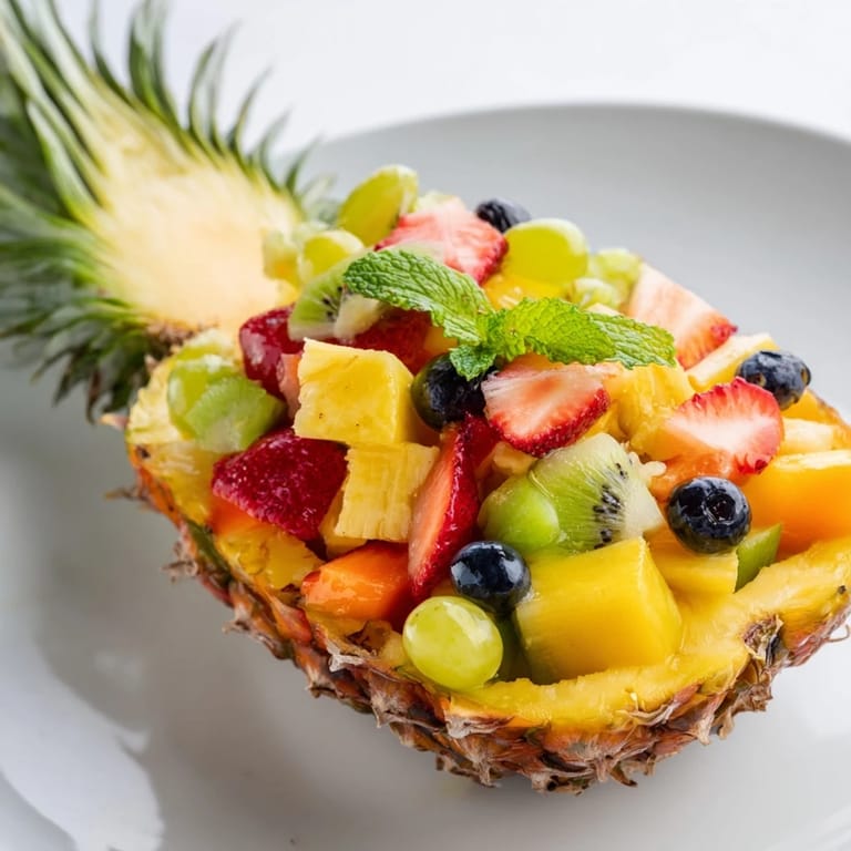 Save to Pinterest A vibrant and refreshing fruit salad served in a pineapple boat, perfect for summer gatherings or as a show-stopping brunch centerpiece.