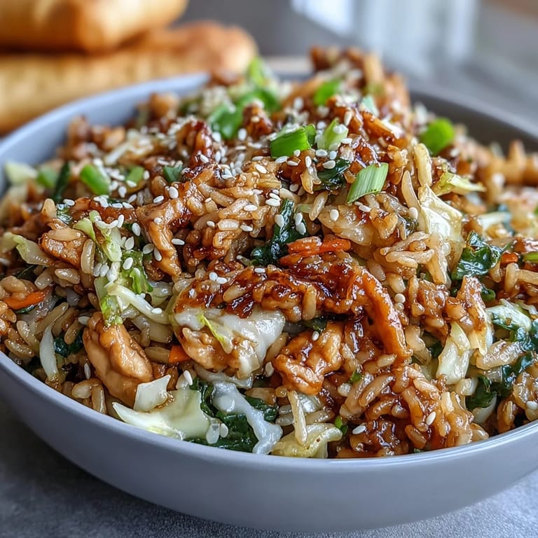 Save to Pinterest My neighbor brought over a crispy egg roll bowl one Tuesday night, and I was absolutely captivated by how the flavors worked together—that savory cabbage, the umami depth, the textural play. I went home thinking there had to be a way to capture all of that magic but with the comfort of fried rice instead, something you could eat with a fork straight from the pan. That night I tossed together what I had in my kitchen, and somehow it worked even better than I expected.